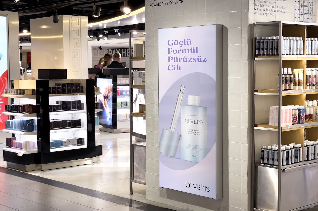 Logonun siyah renkte tercih edilmesi, markanın yüksek segment lüks konumlandırmasını desteklerken, sofistike ve güçlü bir imaj sergiler. Zarif ve ince hatlar, Olveris’in dermokozmetik dünyasında bir statü simgesi olmasını amaçlarken, aynı zamanda sadelik içinde prestiji temsil eder. Siyahın derinliği, markanın kaliteye verdiği önemi ve zarafeti, iddiasız bir mükemmeliyetçilikle gözler önüne serer.
