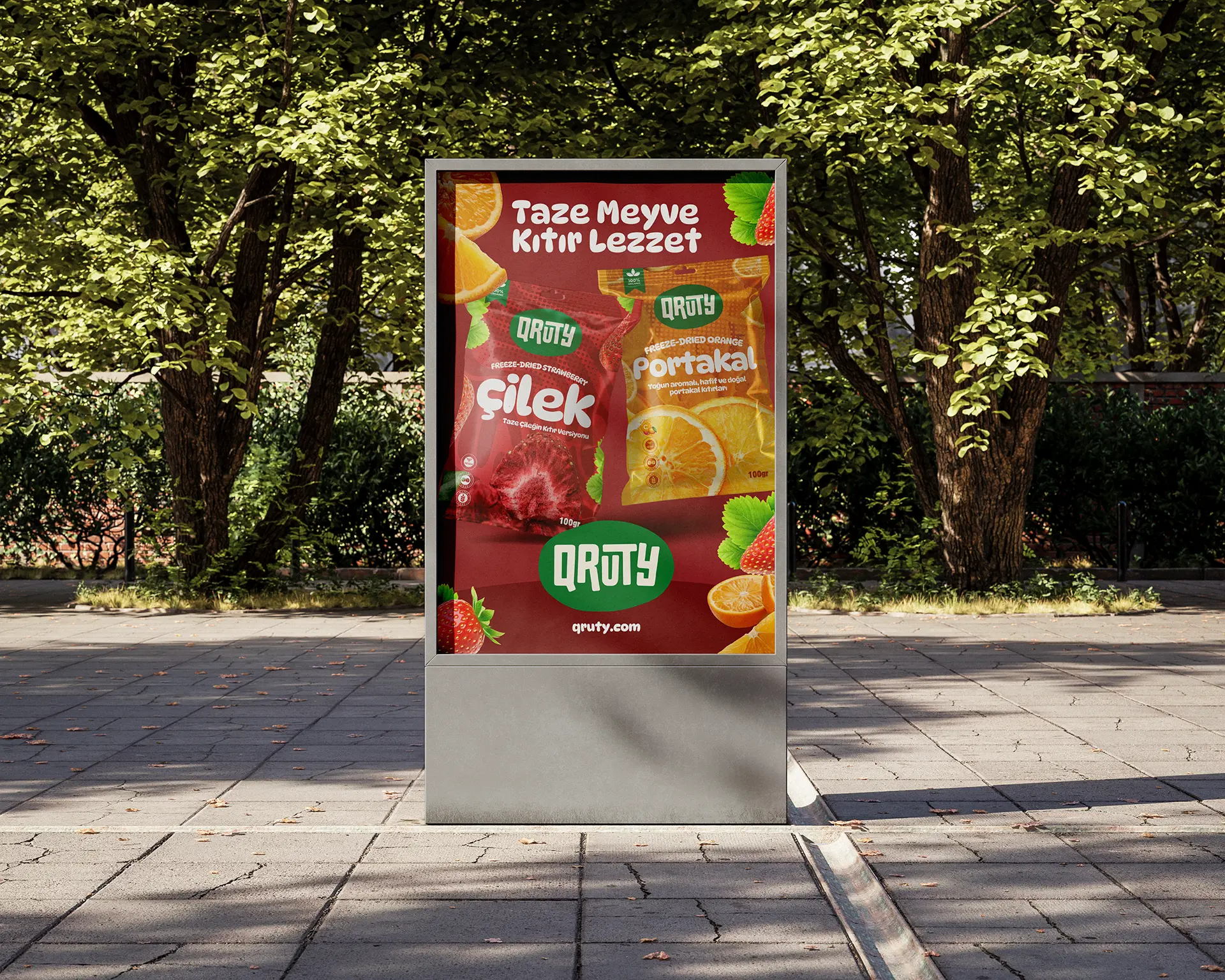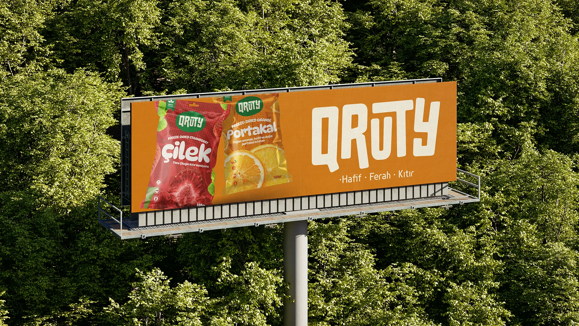 Logo için tek renk yaklaşımı benimsenerek, farklı ambalaj tasarımlarında marka bütünlüğü korunacak güçlü bir imza oluşturuldu. Bu sayede Qruty, ürün gamı genişledikçe dahi tutarlı ve sürdürülebilir bir görünürlük sunuyor.