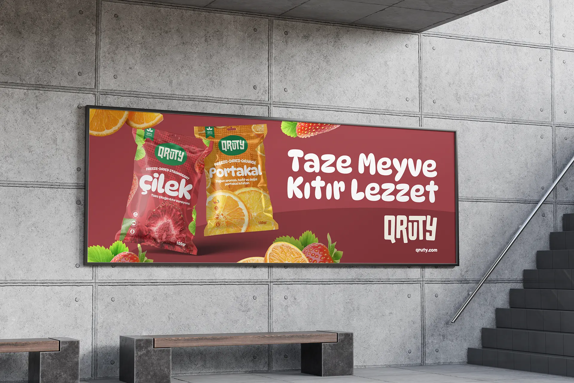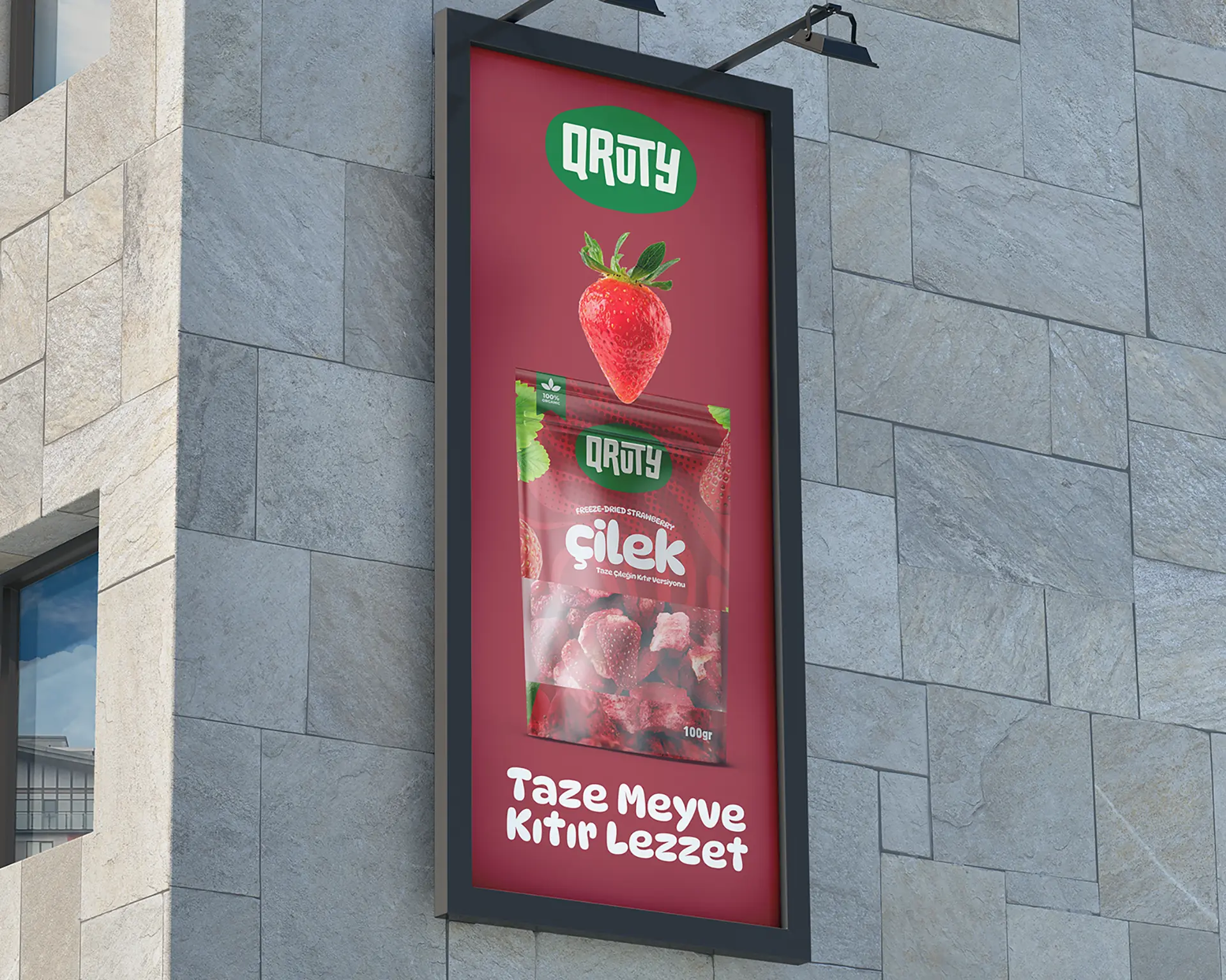 Logo için tek renk yaklaşımı benimsenerek, farklı ambalaj tasarımlarında marka bütünlüğü korunacak güçlü bir imza oluşturuldu. Bu sayede Qruty, ürün gamı genişledikçe dahi tutarlı ve sürdürülebilir bir görünürlük sunuyor.